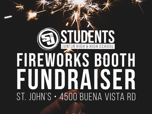 St. John's will be once again hosting a fireworks booth to fundraise for the St. John's Students trips and events. This is our largest and most profitable fundraiser of the year!